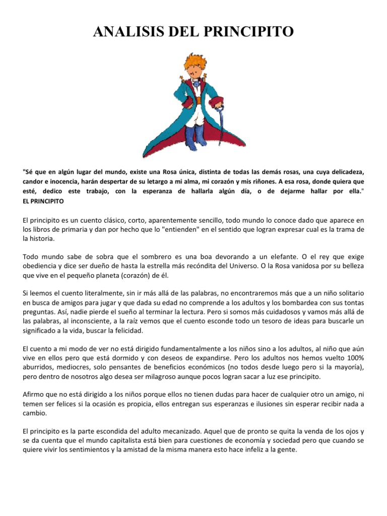 Luego ya no puede moverse y duerme durante los seis meses que dura su digestión». Un libro sencillo para leer cada año y descubrir cosas nuevas entre sus páginas, acompañando al principito en ese viaje físico e interno que hace. Lo escribió mientras se hospedaba en un hotel en nueva york y fue publicado por primera vez en los estados unidos. Analisis de marca de faber castell 4738 palabras | 19 páginas desarrollo de las infraestructuras logísticas en américa latina josé enrique pérez 4 de junio 2009 advanced. Kintux el principito 9 1 de abril de 2017. Si sabes ya leer, es una pieza única para disfrutar, mientras se aprende. 'el principito' es el libro que leíste de niño y que recuerdas con cariño cuando crees. Descubre la mejor forma de comprar online. El principito libro completo el principito audiolibro enseñanza del principito libros clásicos libros lectura libros para niños portadas de libros books libros. En casa del libro disfruta de un 5% de descuento en la compra de libros y envíos gratis en 24/48 horas*. Henry libro electrónico este texto digital es de dominio público en ecuador por cumplirse más de 50 años de la muerte de su autor. Reflexioné mucho en ese momento sobre las aventuras de la jungla y a mi vez logré trazar con un lápiz de colores mi primer dibujo. Es la imagen de la rosa que resplandece en él como la llama de una lámpara.